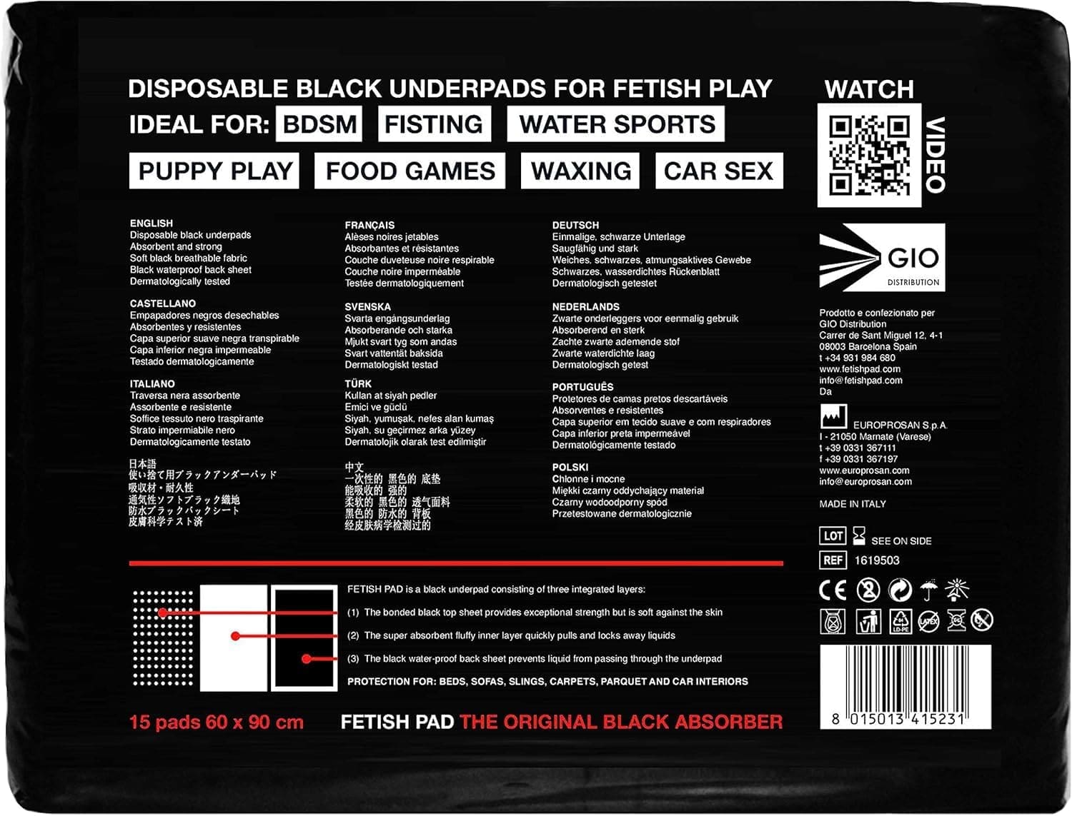 Fetish Pad – The Original Black Absorber – 15 Pack