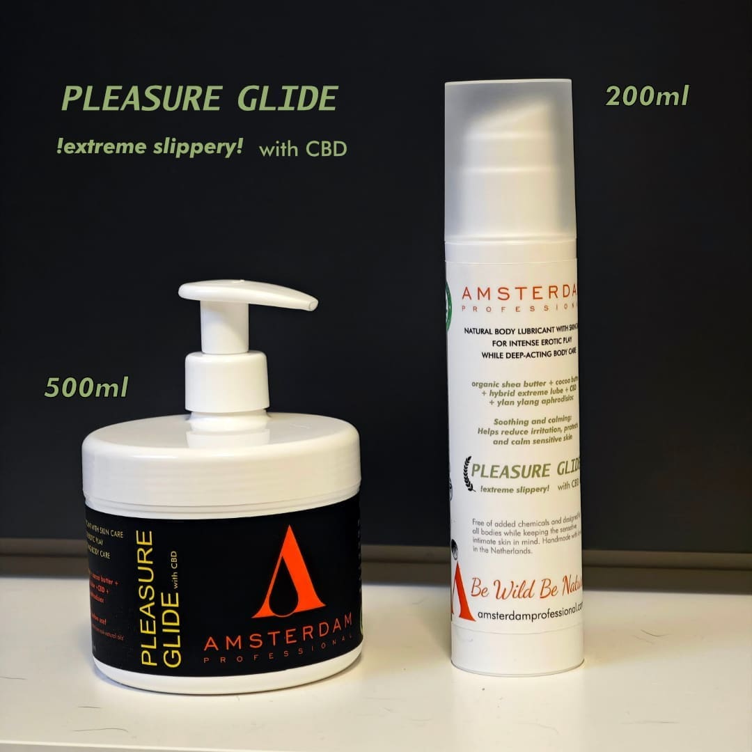 Pleasure Glide is a unique hybrid lubricant based on the famous “HIGH FLYERS” recipe. Natural Essential Oils, Shea butter and our water based extreme lube is homogenized into a creamy personal lubricant. Its like a mix between our water based extreme lube and the HIGH FLYERS lube. Very stringly! extreme slippery !